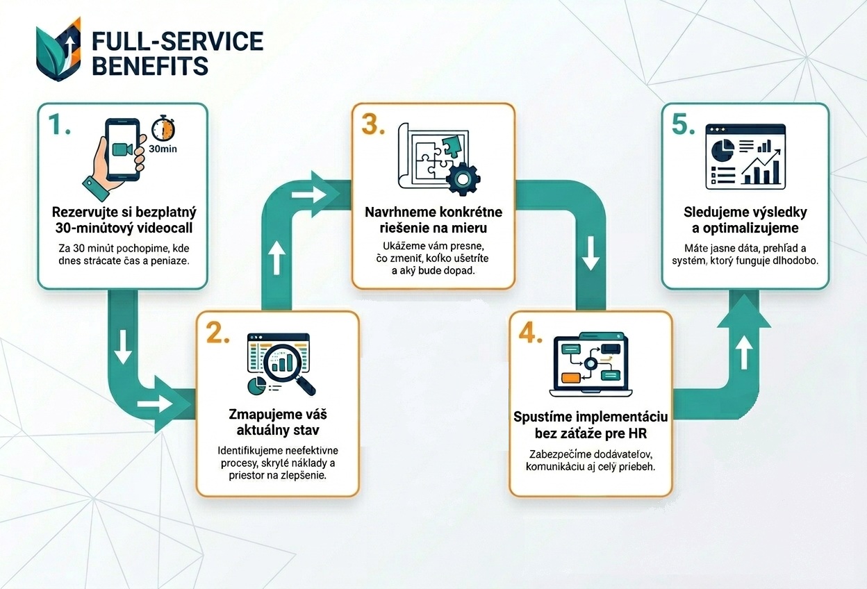 Sme FULL-SERVICE BENEFITS agentúra – navrhneme, zorganizujeme a spravíme všetko za vás, aby HR mohlo sústrediť energiu na ľudí, nie na administratívu. Zabezpečíme podporu a optimalizáciu benefitov, aby prinášali maximálnu hodnotu pre vašich zamestnancov aj firmu.